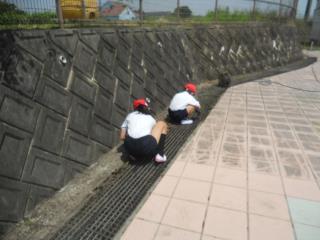 本日は低学年の子どもたちがプール掃除を行いました。