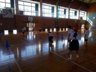 最初に体育館や運動場で全体的な指導を行いました。