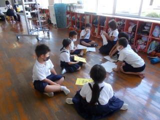 転入してきたお友達のために、学校探検をしていました。