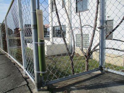 3月末、交通指導員の岡部さんが登校旗を立てる筒を設置してくださいました。竹を切って手作りしてくださった筒で見事です。ありがとうございます。