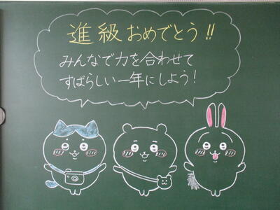 明日から楽しみにしているお勉強が始まりますよ。登校班のお兄さん、お姉さんたちと一緒に、車に気を付けてしっかり歩いてきてくださいね。待っています。