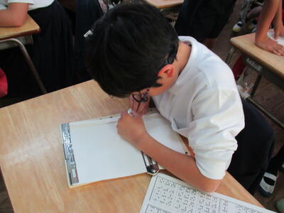 2年生は、九九をがんばっています。スクリーンに大きく映し出される九九を一瞬で唱えます。繰り返すうちにどんどんスピードアップして、楽しそうです。しっかり覚えようね!