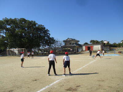 写真は、先週、6年生たちの体育の授業でベースボール型ゲームに取り組んでいる様子です。みんなでワイワイ賑やかでした。明日はこんな青空が広がってくれるといいですね。