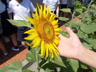 子どもたちも喜んで見事なヒマワリの花を見ていました。