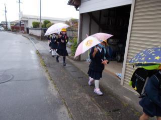 かさをすぼめたり、安全確認を行ったりしながら、気をつけて下校することができていました。