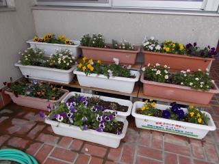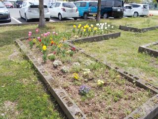 L字花壇です。ここはチューリップがまだきれいに咲いています。