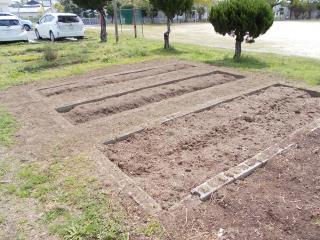 職員玄関前の蘇鉄の花壇の整備を行いました。