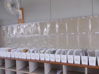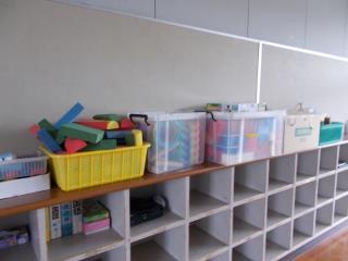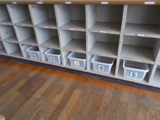 教室後方のロッカーもかごがあり、使いやすそうです。