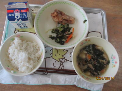 今日の給食のおかずは「だご汁、とりの唐揚げ、梅のさっぱりサラダ」でした。だご汁は熊本県の郷土料理です。各家庭の味がありますよね。だごがふんわりしていました。