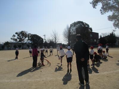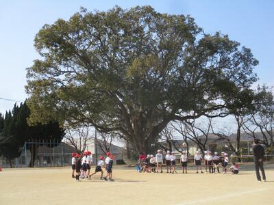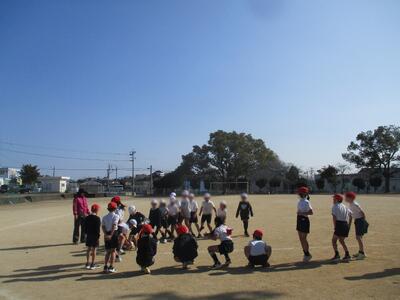 さて、3年生たちは、体育の時間に「ゴール型ゲーム」に取り組んでいました。空気はひんやりしていますが、サンサンと降り注ぐ日差しをあびて、張り切っている3年生たち。赤白のチームに分かれてボールを追いかけ懸命に走る、ボールをキャッチしてみんなで運び、ホームインして大歓声。みんなで楽しかったね。