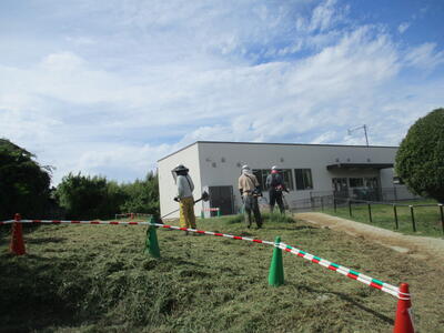 昨日、今日の2日間、シルバー人材センターから草刈りに来てくださいました。運動場や草捨て場周辺など広範囲を刈っていただき、すっきりきれいになりました。ありがとうございました。