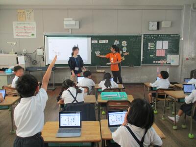 本日28日、1,2年生は、ALTタビーナ先生と初めての英語の学習をしました。ハローウィンがどのような行事であるか紹介され、ビンゴゲームを通して英語の言葉に慣れ親しんでいました。みんなとても楽しく学んでいました。