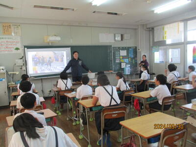 午後は、6年生たちが大俵まつりの歴史を学ぼうと、玉名観光協会・大俵まつり実行委員会から講師の先生に来ていただきました。11月のまつりに向けて練習を始めた6年生たち。菊池川河口にある玉名市は、江戸時代から菊池川流域の米の集積地として栄えていたこと、舟に米を積み込む際「高瀬船着場跡」の石畳の坂を利用していたこと、その坂が今は「俵ころがし」と呼ばれていることにちなんで大俵ころがしレースが考えられたとのことでした。動画を見せてもらったり、大俵が1トンもの重さがあること等を知ったりして、興味深く学びました。玉名の繁栄と五穀豊穣に感謝するまつり。練習にもますます力が入りそうですね。講師の先生方、ありがとうございました。