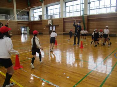 3年生たちは長縄にチャレンジ。連続で何回跳べるか、みんなで数をカウントしながら飛び続けます。友達の声援を受けて跳べた人もいました。こうして、いろいろな学習経験をとおして、子どもたちはみんなで伸びて行きます。