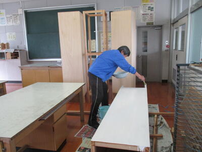 小北先生が製作を続けてられている入退場門もペンキ塗りの工程に入りました。感謝です。