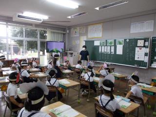 2時間目に、1年生が国語の物語「やくそく」の学習をしていました。