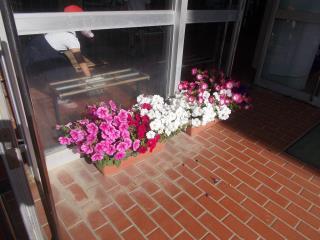 玄関前の花が、子どもたちを迎えてくれています。