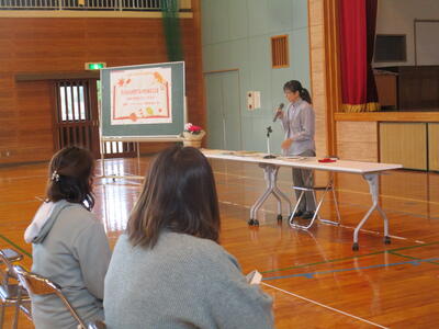 教育講演会では、「子どもの心を育てるいのちあることば~絵本や昔話がもたらすもの~」と題して、ぺぺぺぺぺらんの高野さんから、「絵本を読んでもらうことで想像力が培われること」、「家庭で絵本を読んでくれる大人の存在は、学童期以上の子ども(思春期)の心を支えること」など、たくさんお話しいただきました。早口言葉や付け足し言葉で遊んだり、実際に絵本を読み聞かせをされたりして、「親と子と絵本」をつなぐきっかけをいただいたように思います。私も、子どもたちに読み聞かせをするなら、何の本にしようかとワクワクしながら考えていました。選書リストをいただきましたので、ありがたいですね。まずは、その時間をつくることからスタートしてみてください。