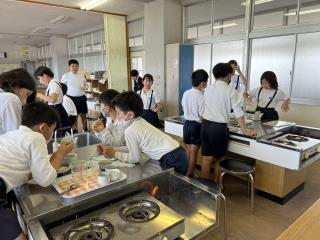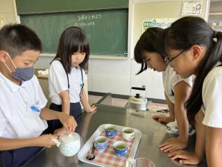 5年生が昨日、家庭科でお茶をいれる学習を行いました。