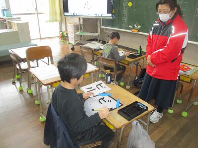 あおぞら教室では、先生と一緒に教科書の音読を練習している人、習字をていねいに書いている人がいました。静かな環境でじっくり取り組むことができています。1時間よくがんばりましたね。