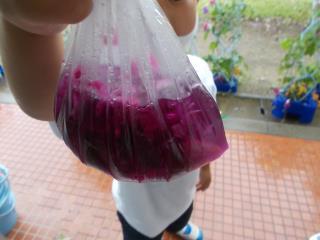 アサガオの色水づくりです。