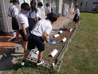 午前中、3年生が理科で日なたとひかげの地面の温度を測定していました。