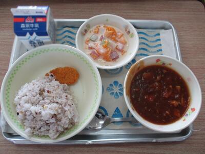 今日の給食は「雑穀ご飯、きのこハヤシライス、ナゲット、フルーツヨーグルト」でした。十六穀米を入れて炊きあげられた雑穀ご飯は、とても香ばしくてハヤシライスにピッタリでした。6年生ともなると、給食の配膳も手際がよいものです。みんなで準備してみんなで食べる給食も、きっと思い出の1ページになるでしょう。
