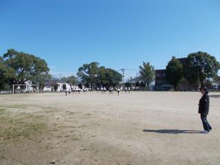 久しぶりの昼休み、3年生の子どもたちが中庭で