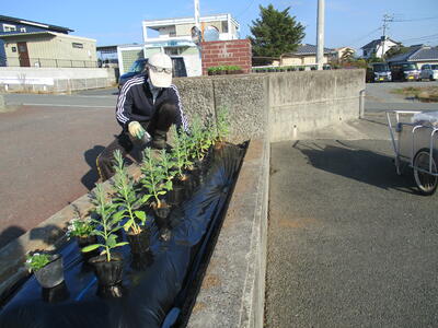 2年生が卒業式に向けて、チューリップとアリッサムの苗を植えました。