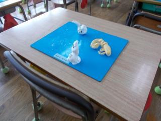 その中に出てくる登場人物や鍵などを紙粘土でつくっていました。