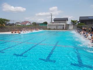 5年生が気持ちよさそうにプールでの学習をしていました。