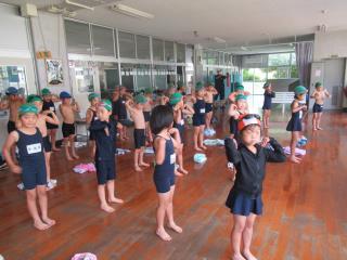 昨日の高学年に引き続き、低学年のプール開きを行いました。