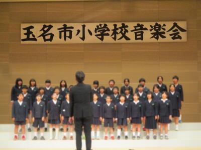 玉名市小学生音楽会が開催されました。開会行事のなかに全員合唱があり、山口先生の指揮で「歌えバンバン」を歌い、いよいよ開演です。高道小はプログラム3番。緊張感の伝わる舞台でしたが、先生の指揮をよく見てピアノ伴奏に合わせて歌っていくなかで、いつもの優しいやわらかなハーモニーが響きました。
