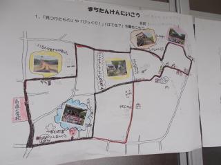 社会科で校区探検に行き、まとめたものが掲示されていました。