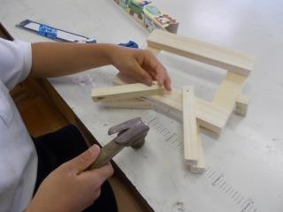 3・4時間目に、4年生が図工室で工作に取り組んでいました。
