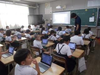 3校時に、2年生がICT支援員の先生に