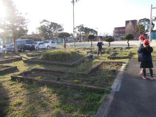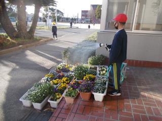 早速、新環境委員会の子どもたちが花壇の水やりをしていました。