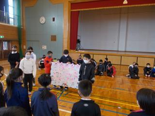 6年生へ感謝の気持ちを伝えています。