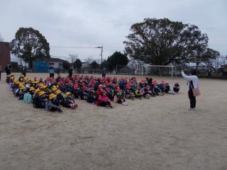 初めに運動場に集まり、担当の先生から諸注意がありました。