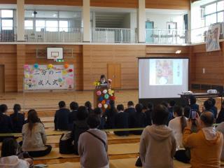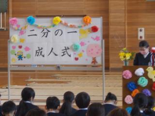 4年生は、体育館で「二分の一成人式」を行いました。