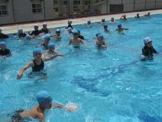 5年生が気持ちよさそうにプールでの学習をしていました。