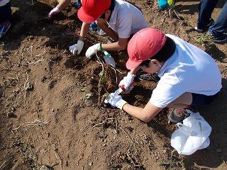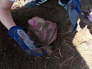 いもを見つけました。一生懸命ほっています。