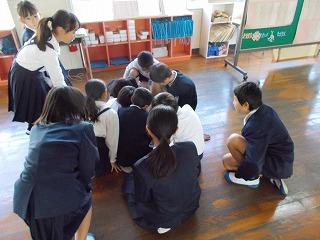 朝の時間を使い、たてわり班に分かれて集まりました。
