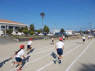 昼休みの最後の時間を使い、全校児童で運動場を走ります。