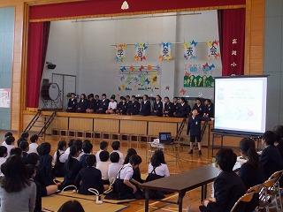 中学校の先輩たちのはきはきとしたあいさつを目指して、高道小の子どもたちも気持ちよくあいさつができていました。