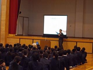 岱明給食センターの栄養職員の先生に来ていただき、様々な給食のお話をしていただきました。