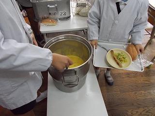 今回は、コッペパン、ウインナー、キャベツのサラダ、かぼちゃのポタージュでした。