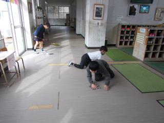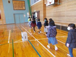 探検が終わり、体育館に帰ります。