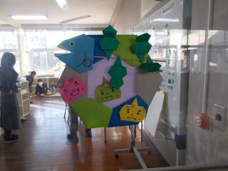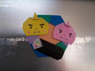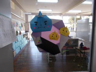 折り紙で作ったかわいい節分飾りが掲示されていました。