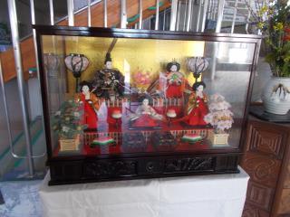 職員玄関前にひな人形が飾られていました。